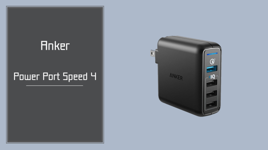 今回購入したのはこちらの「Anker PowerPort Speed 4 」です。QuickCharge3.0(急速充電)に対応しているため、QC3.0に対応した端末なら通常の4倍の速さで充電できるという優れもの。